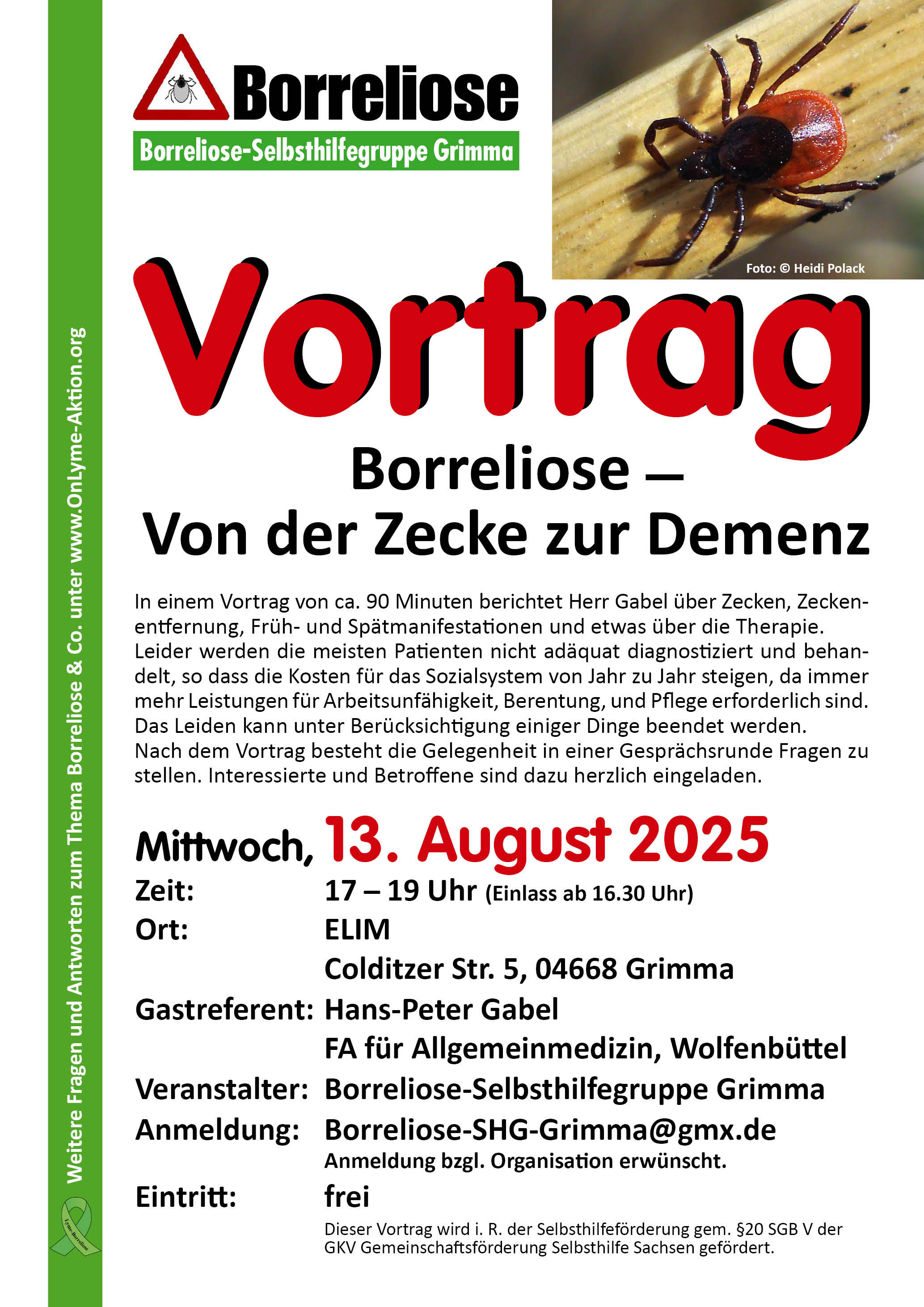 Anmeldung und weitere Informationen per E-Mail über Borreliose-SHG-Grimma@gmx.de