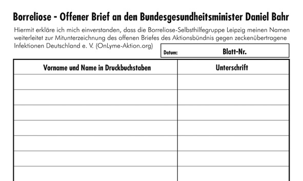 Flyer der Borreliose-SHG-Leipzig - Klick hier! Aktuell keine Gruppentreffen!