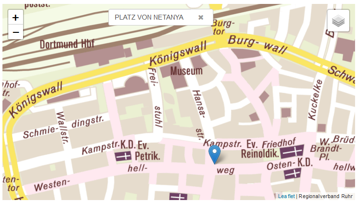 Der Platz von Netanya befindet sich am Kreuzungspunkt von Westenhellweg und Hansastraße, neben der Mayerschen Buchhandlung. Vom Hauptbahnhof ist er fußläufig oder per U-Bahn erreichbar.