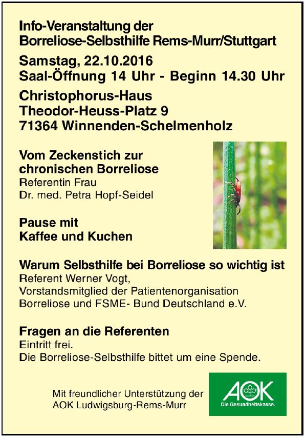Info- Veranstaltung der Borreliose-Selbsthilfe Rems-Murr/Stuttgart