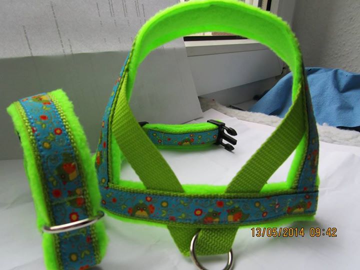 Dazu das schicke grüne Geschirr bzw. Halsband